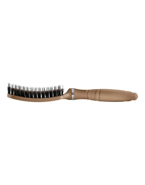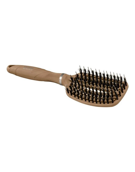 Szczotka Ge-bion z naturalnym włosiem dzika i nylonem z 17 minerałami, które oczyszczają i usuwają toksyny, rozczesuje bez szarpania, a dzięki elastycznej konstrukcji dopasowuje się do włosów i skóry głowy.