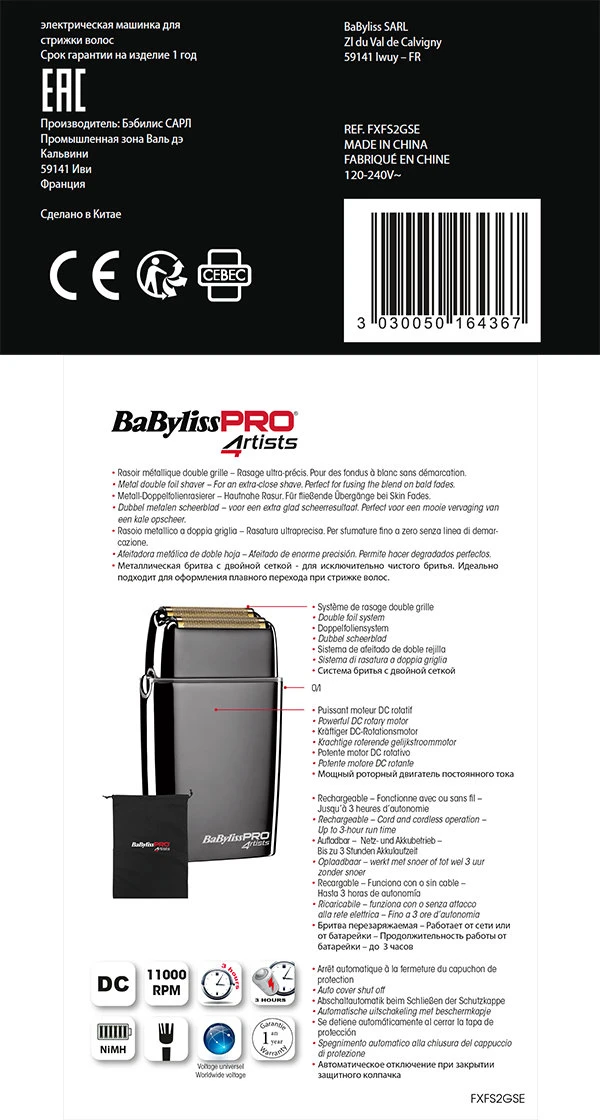 Profesjonalna metalowa golarka foliowa BaBylissPRO
