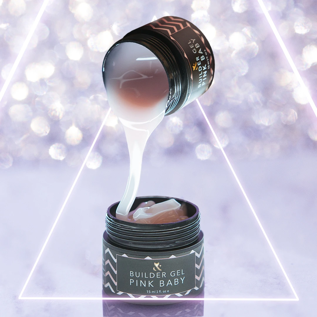 Preparat F.O.X Builder gel Pink Baby to uniwersalny żel budujący do modelowania i korekty kształtu paznokcia. Ma delikatną różową barwę, a jego powierzchnia jest matowa. Może być stosowany jako żel jednofazowy lub drugi etap w trójfazowym procesie stylizacji paznokcia. Bardzo dobrze trzyma się naturalnego paznokcia. Tworzy idealną krzywą C i wyróżnia się wysoką trwałością. Posiada właściwości wyrównujące. W jego skład wchodzą nitroceluloza i kauczuk, które zapewniają sprężystość i zapobiegają odpadaniu żelu od paznokcia.