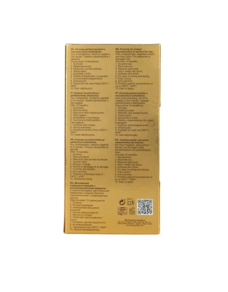 Ekskluzywne połączenie peptydów z hydrolizowanej soi i pszenicy, w synergii z zastosowaną keratyną roślinną, a także Płynne Złoto, które pozwoli nawilżyć włosy, tworząc naturalny i przepuszczalny film na samym włóknie, sprawiło, że ten produkt jest ekskluzywnym koktajlem aminokwasów zdolnym odbudować podstawową strukturę łańcuchów alfa-keratynowych, obecnych we włóknie włosa i odpowiedzialnych za odporność i elastyczność włosów.