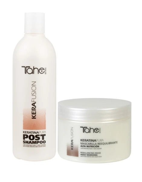 KERAFUSION od TAHE został opracowany, aby naprawiać każde włókno włosa, dostosowując je do poziomu jego uszkodzenia, regenerując, wzmacniając i uszczelniając łuskę włosa dzięki połączeniu działania keratyny, płynnego złota i tanin.