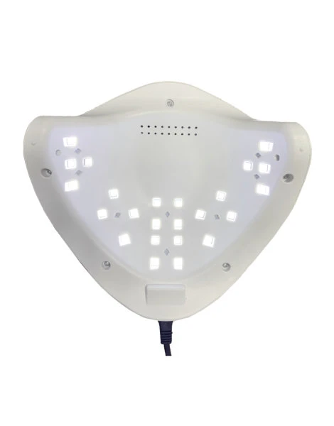 Lampa UV Dual LED SOLE 48W posiada 24 diody LED o dwóch długościach fal: 365 nm oraz 405 nm. Gwarantuje to szybkie utwardzenie każdego żelu czy hybrydy. Diody rozłożone są w kształt litery U, co powoduje, że światło dociera równomiernie do wszystkich paznokci. Lampa przeznaczona jest do użytku profesjonalnego. Lampa posiada zdejmowany spód, co ułatwia utwardzenie lakieru na paznokciach u stóp, a także czyszczenie i dezynfekcję.