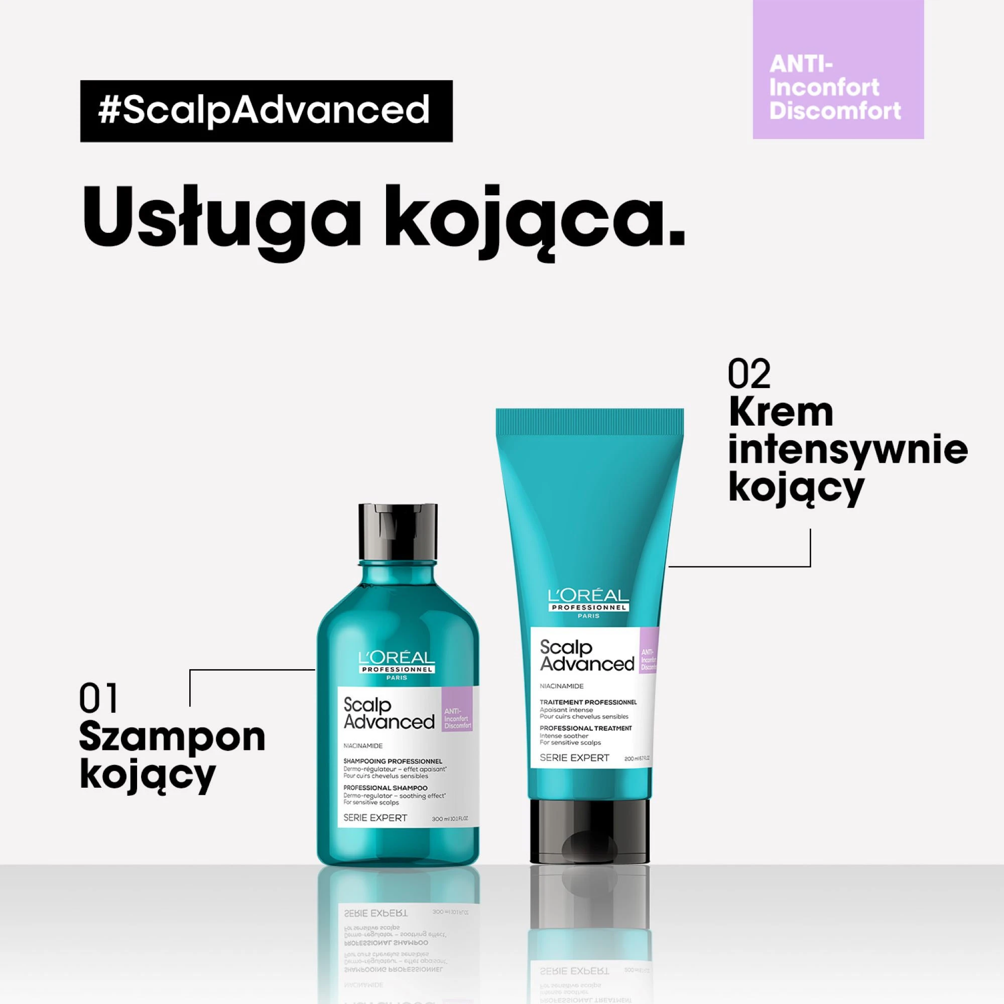 razem z kremem intensywnie kojącym Scalp Advanced, aby uzyskać dodatkowe efekty