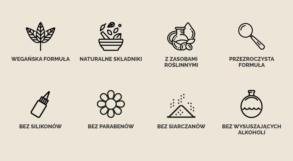 Zmniejsza puszenie się włosów, pozostawiając je miękkie i lśniące.