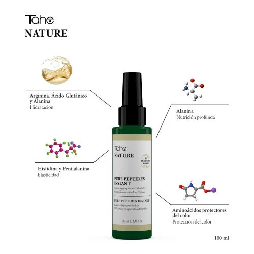 Pure Peptides Instant to natychmiastowa kuracja przeciw łamaniu i zagęszczaniu włosów firmy Tahe Nature z formułą z peptydami. Jako biotechnologia regenerująca włosy, opiera się na koktajlu aminokwasów z enzymatycznych hydrolizatów białek pszenicy i soi.