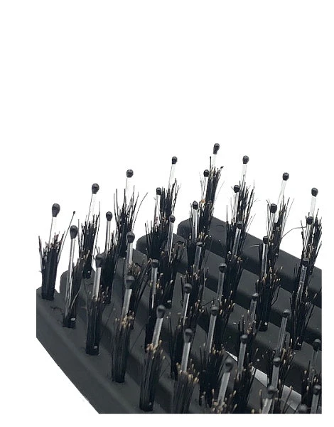 - mieszane włosie dzika oraz nylonu - wysokiej jakości czyste włosie z dzika, ścinane tuż u nasady, sztywne, wygładza włosy podczas stylizacji oraz nadaje im połysku. W połączeniu z nylonowym włosiem skóra głowy jest delikatnie stymulowana.