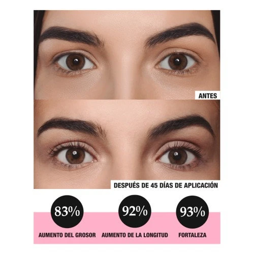 - Kompleks peptydowy : Stymulują wzrost dłuższych, gęstszych i mocniejszych rzęs, a także chronią i odmładzają delikatną okolicę oczu. Formuła przyczynia się do uzyskania bardziej wyrazistego i atrakcyjnego wyglądu, z wyraźnie zdrowszymi rzęsami oraz miękką i nawilżoną skórą wokół oczu.