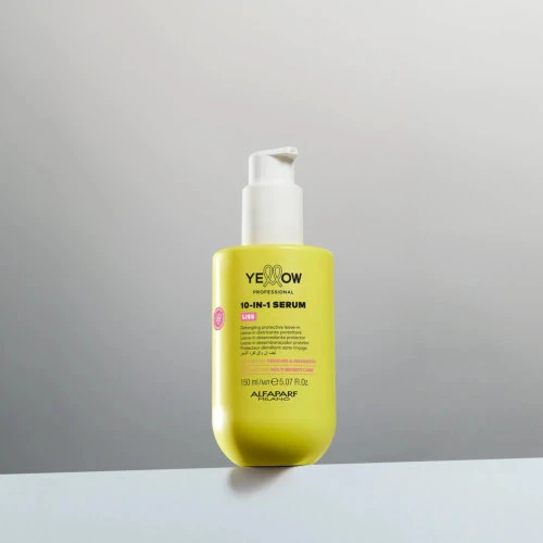 Wielofunkcyjne serum bez spłukiwania o 10 korzyściach: dyscyplinuje, zapobiega puszeniu się włosów, ułatwia rozczesywanie, chroni przed wysoką temperaturą, chroni przed promieniowaniem UV, zapobiega wilgoci, działa antystatycznie, zapobiega rozdwajaniu się końcówek, uszczelnia łuski włosa, nadaje połysk.